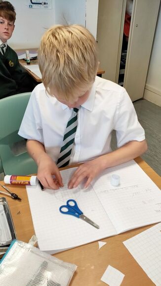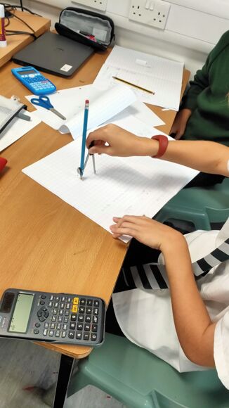 Mrs Mullan's Year 7 class investigated how many square radiuses fitted into the area of a circle. They all agreed that they needed fewer than 4, but a little more than 3 square radiuses - hence how we discovered the number pi!