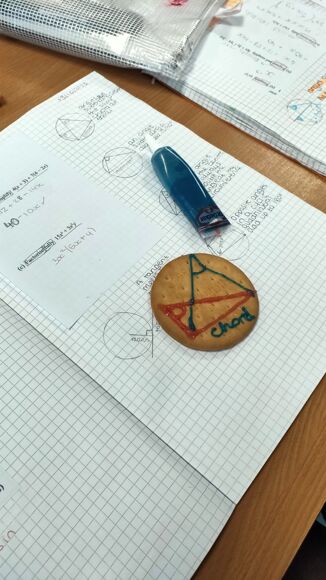 Year 11s have been learning about circle theorems, and the eight different angle properties that occur with circles, triangles, chords and tangents. Students used biscuits and icing to recreate the theorems in a memorable way, and then ate them in the hope that they would also consume the knowledge.