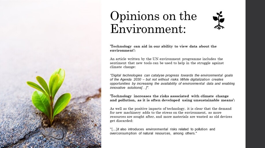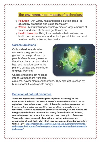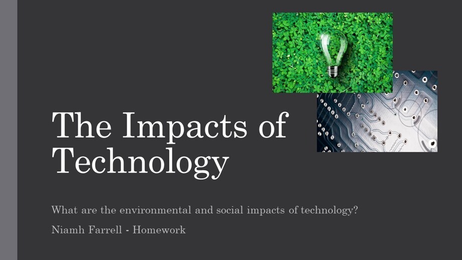 Naimh submitted her entry with several localised and relevant community issues. Keeping this in mind, her analysis includes her opinion involving several article references such as the social impacts of technology, the digital divide and climate change. Finally she ends with her thoughtful opinion- which she titles Are the Advantages Worth the Disadvantages?