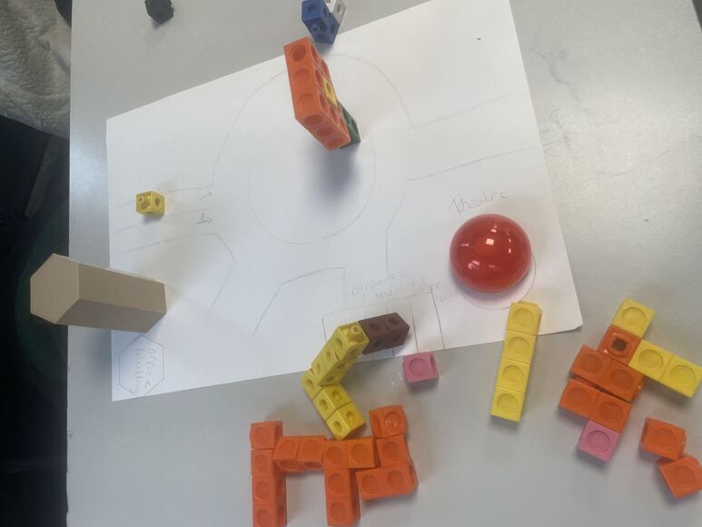 Just before half term, to bring the unit to a close, the students built their own towns with these skills in mind.