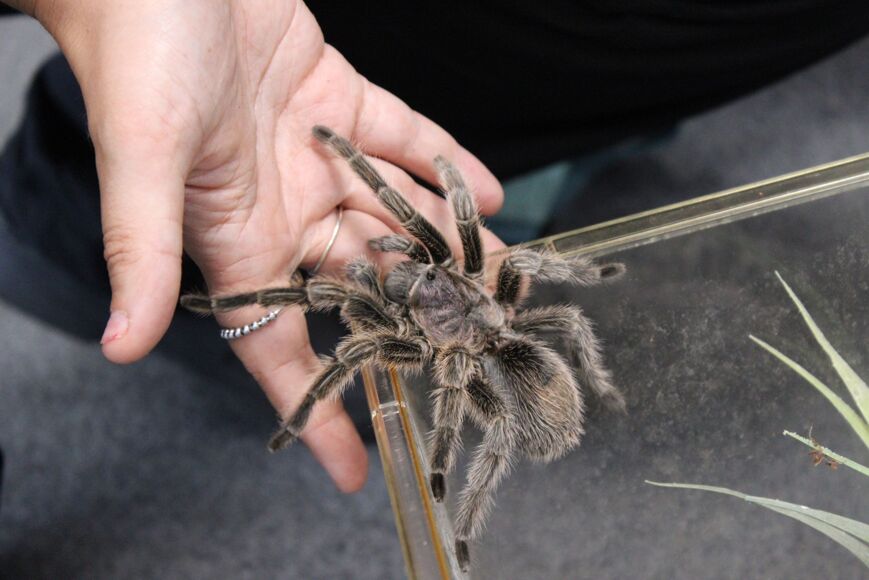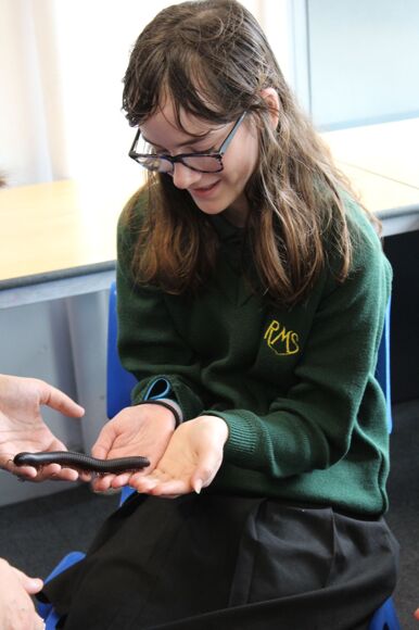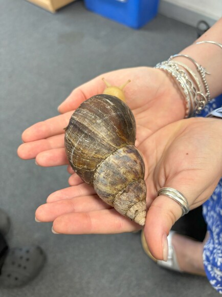 Students met some of ZooLab's animal team members, including a millipede, a snake, an Austrlian tree frog, Bullseye the giant land snail, and a tarantula named Bella!