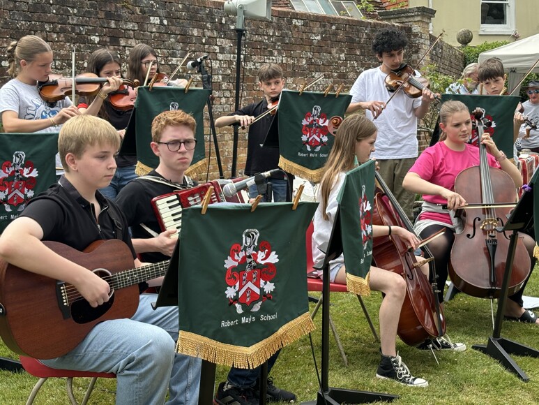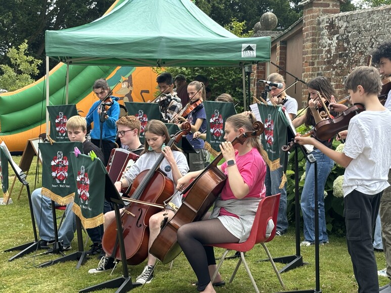 On Saturday the RMS Folk Band and RMS Jazz Ensemble provided entertainment at the Odiham Fete in the grounds of Hatchwood House.