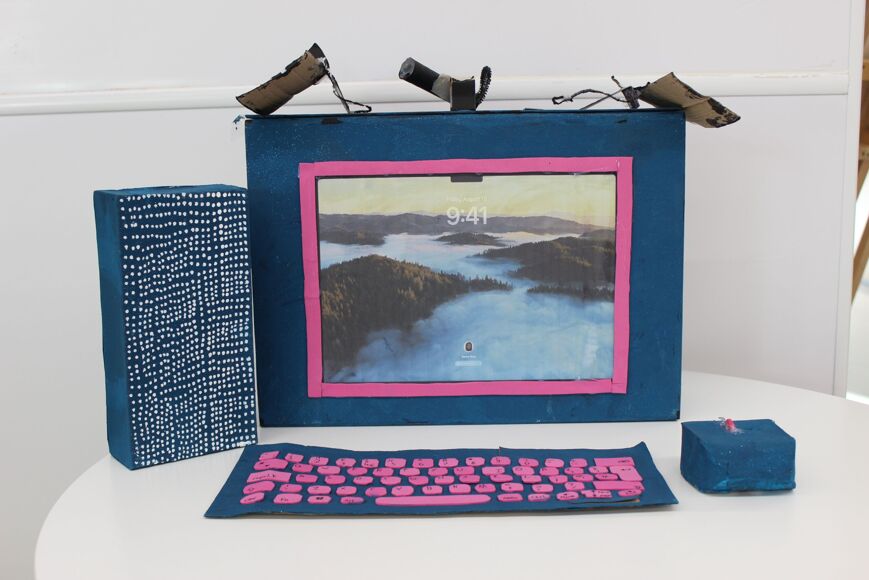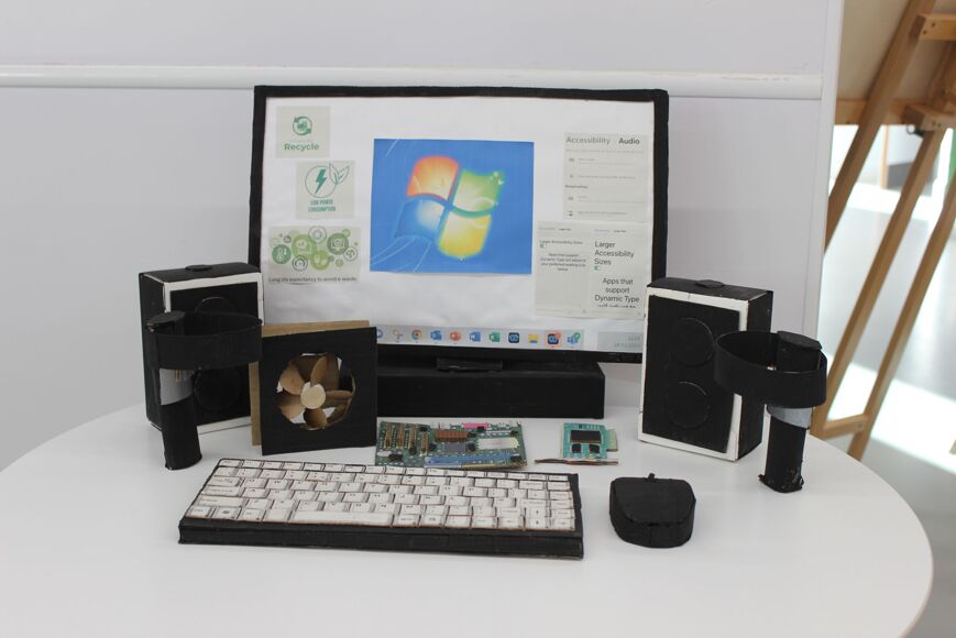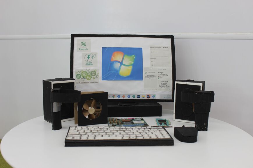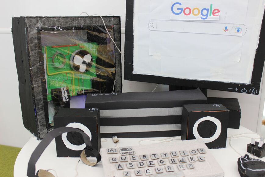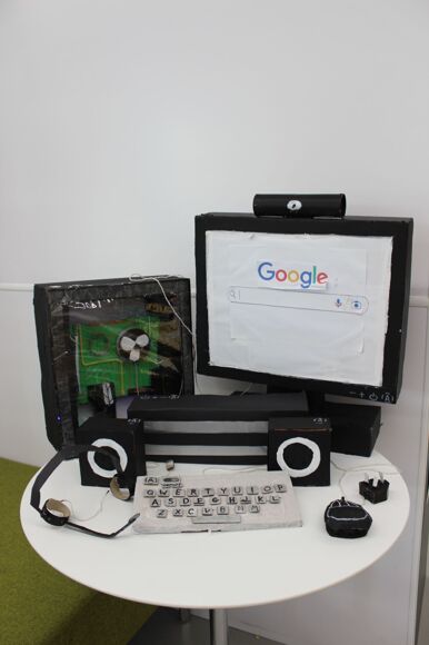 Florence's computer had a focus on environmental issues including detailed solar panels, and innovative realistic camera! Your creative, colourful design is held together in a hidden box file! The internal parts included an accurate motherboard. We were impressed, and a favourite from the student voice!