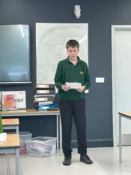 We were thrilled to hear the winning speeches from each Year 9 class, and heard thought-provoking speeches on a range of important and interesting topics, including racism in football, autism awareness, why failure is important for growth, and the shocking 'Shrinkflation' of our favourite supermarket products to name a few.