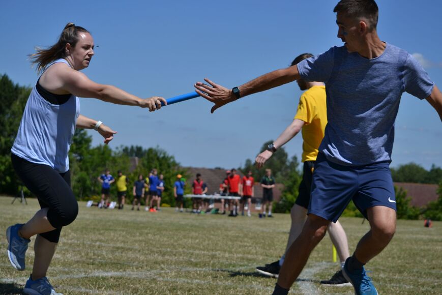As Sports Day came to it's conclusion we saw even more of a change in points through the year groups relay races, students showcased great teamwork and communication skills to get the batons around the track safely. The very final event saw the staff house relay, the noise that students created when cheering their teachers on was incredible. The race saw Mr Parsons fly out of the blocks and take an early lead for Jubilee House with the remaining houses in close contention. Heading into the final two baton changes, Crown House were chasing down Jubilee House, closely followed by Rose. As the batons were passed over for Crown House, Mrs Hazell was just ahead of Mr Maliphant who was team Jubilee. It was clear that these two were fighting it out for first and second. Mrs Hazell did a brilliant job of holding Mr Maliphant but with 10 metres to go Mr Maliphant moved ahead to take the gold for Jubilee, Mrs Hazell crossed in a very well deserved second and Mr Holt bought the baton home to take third place for Rose House.