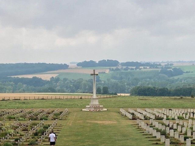 After lunch, we visited Thiepval, a cemetery with names of fallen soldiers on every wall. Personally, this site hit me hard - the list of missing soldiers was never-ending, showing the true impact of war. We finished our trip at the Devonshire Cemetery, a small gravesite with a sad story behind it - lack of faith in British troops resulted in more lives being unnecessarily lost.