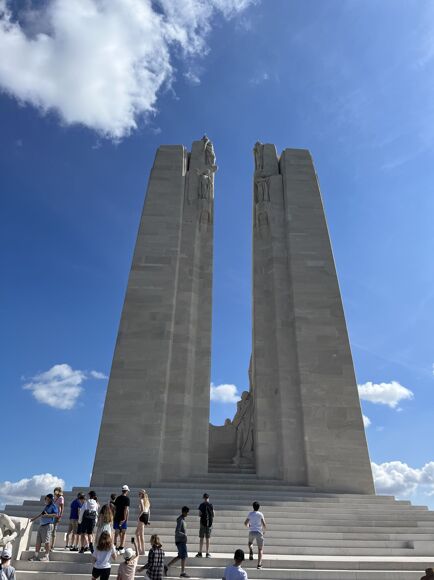 As the sun faded into an evening light, we finished the day off with a filling dinner and a ceremony at the Menin Gate. This ceremony has taken place every evening at 20:00 since the 2nd of July 1928, it serves to remember those who fought in the war. This was followed by a trip to the local Belgium Chocolate shop, before heading off to bed. The next day, we set off to the Vimy Ridge, a Canadian warsite filled with huge bomb and mine craters, surrounded by masses of forest - again showing the awful number of lives lost. We later found out that every tree planted represented a Canadian death in the trenches. I personally found this tour particularly interesting, yet harrowing, as we were shown around the tunnels below and found out that they were actually carved out by hand - miners using their fingernails as digging tools in order to keep as quiet as possible. These were used to keep military lives safe and protect runners from getting killed while carrying messages to places. The tunnels lead to the trenches outside, with the Canadian offensive line just a couple of metres away from the German defence line. Finishing off that tour, we headed to Newfoundland Park, another Canadian remembrance site, where we had lunch.